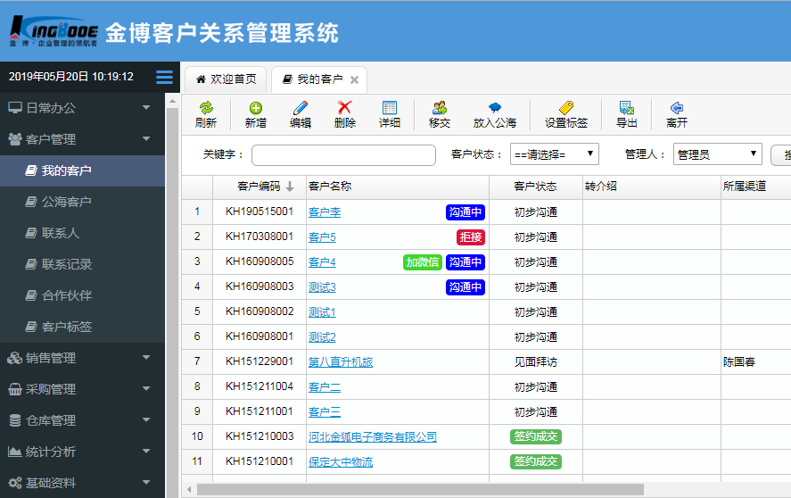保定金博軟件科技有限公司自13年創(chuàng)建以來,致力于提供具有特色的軟件產(chǎn)品、解決方案,以及全方位完善的售后服務(wù)。根據(jù)中小企業(yè)不同成長規(guī)模,提供系列產(chǎn)品,K1系列(商貿(mào)王、工貿(mào)王、客戶王、服裝王、醫(yī)藥王、物流王等產(chǎn)品)、K3CRM管理系統(tǒng)(C/S) 、K4協(xié)同CRM管理系統(tǒng)(B/S) 、IOA辦公自動化系統(tǒng)。現(xiàn)憑借豐富的開發(fā)經(jīng)驗在CRM系統(tǒng)中成功對接了呼叫中心,為客戶提供更強(qiáng)大的CRM系統(tǒng)。