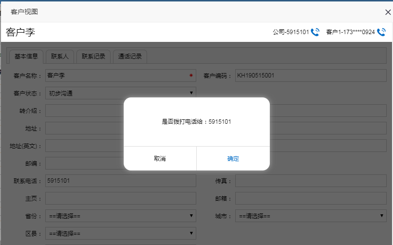 呼叫系統(tǒng)與CRM系統(tǒng)深度融合,在系統(tǒng)中直接點擊撥號按鈕,系統(tǒng)自動彈出跟進(jìn)窗口,省去手工撥號的麻煩,方便快捷。